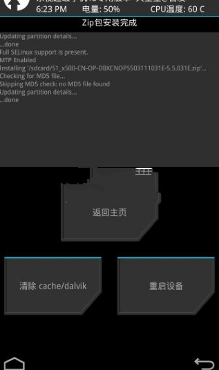 6:刷入完成後,選擇【重啟選項】->【系統】,手機會自動重啟!第一次開機時間可能有點慢,請耐心等待!