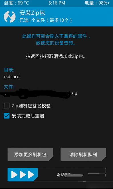 4:點擊安裝,進入目錄中找到自己放置的ZIP卡刷包。