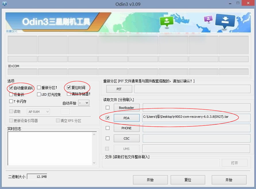 3、手機關機,進入下載模式(關機-音量鍵下+home鍵+電源鍵,出現警告界面,按音量鍵上,即進入下載模式),然後連接數據線,點擊開始按鈕即可刷入。