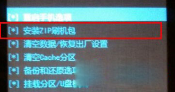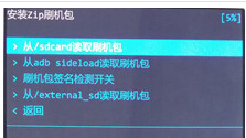 5:返回主界面,按音量鍵選擇【安裝zip刷機包】然後再選擇【從/sdcard讀取刷機包】,然後找到剛才復制到手機sd卡根目錄下的zip格式的rom刷機包(比如:XXXXXX.zip),然後再選擇【是的-安裝 XXXXX.zip】,按電源鍵確認