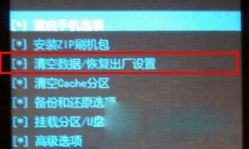3:用音量鍵選擇【清空數據/恢復出廠設置】然後再選擇【是的-清空所有數據】然後按電源鍵確認