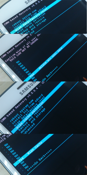 1、手機進入刷機模式,方法:關機狀態下,同時按住音量下鍵+HOME+電源鍵,出現選擇畫面之後按音量上鍵。