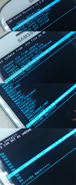 4、刷入MIUI ROM,在手機上依次執行(音量鍵選擇,電源鍵確認)。