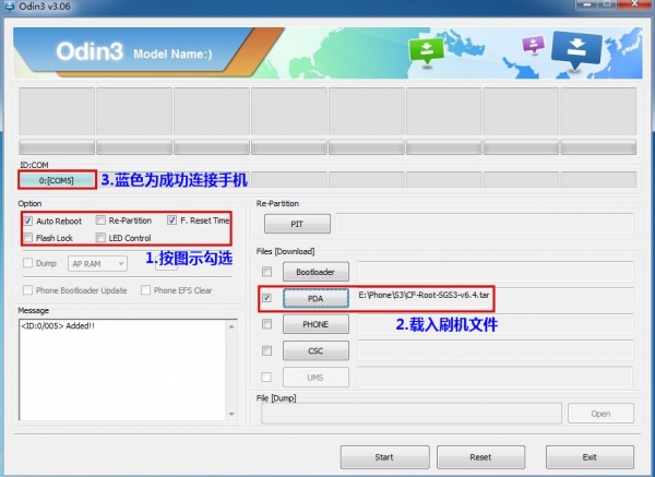 2、運行刷機工具包中的Odin3 3.06,刷入第三方Recovery