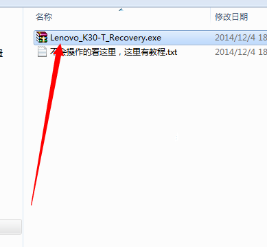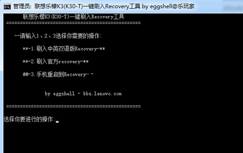 3、接著在解壓出來的Recovery文件裡找到【Lenovo_K30-T_Recovery.exe】,選擇要刷入的Recovery類型,正常情況大家應該都是選擇1,中英文雙語版Recovery