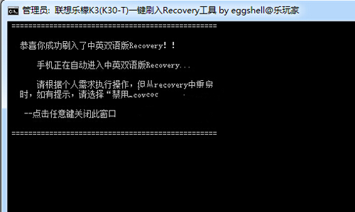 7、數秒後Recovery刷入完成,此時會提示以下信息,同時手機將自動啟動到Recovery中(如果刷的是官方Recovery,則僅重啟到系統中)