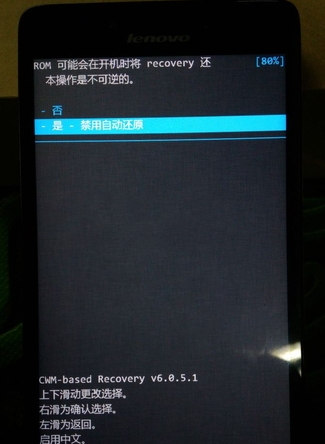 8、到這裡,其實Recovery已經刷入到你的手機裡面了。但是依然需要你好好的看看上面上步的提示。如果在刷入的CWM中重啟時看到以下信息,請堅定的選擇“禁用自動還原”
