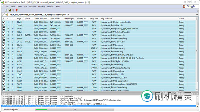 將沒有勾選的兩項勾選上並點擊start開始進入刷機,如下圖: