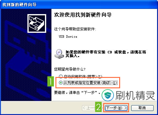 手機關機狀態下連接電腦,電腦會提示安裝驅動,根據下圖操作: