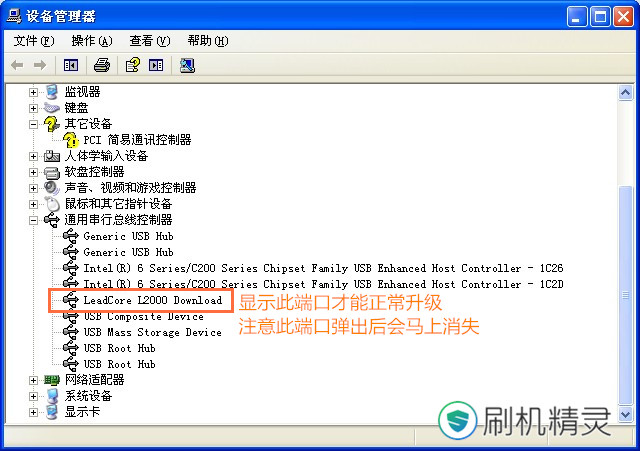 安裝完畢後在設備管理器(鼠標右鍵我的電腦->設備管理器)如下圖所示代表驅動安裝完畢,可以進行刷機: