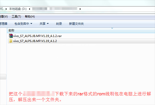 2:把上面下載下來的文件包先進行解壓,解壓出來一有個文件夾,文件夾裡還有兩個文件夾,一個文件夾裡是刷機工具,一個文件夾裡是rom文件: