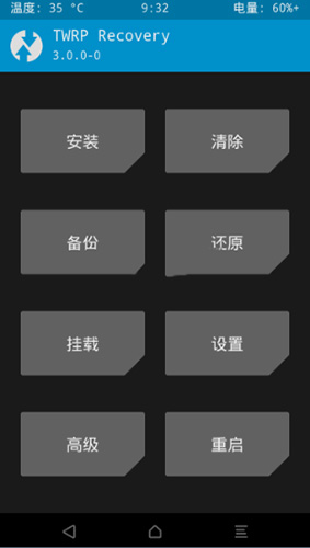 3:點擊 “安裝”,即可進入系統目錄選擇文件。選擇“選擇存儲器”可以切換內外存儲器,找到剛剛准備好的zip格式root包,點擊它,然後滑動下方按鈕“滑動確認刷入。
