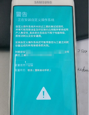 1:手機先完全的關機,然後同時按住手機的音量下鍵 + HOME鍵 + 電源鍵,等待3秒,出現下圖界面: