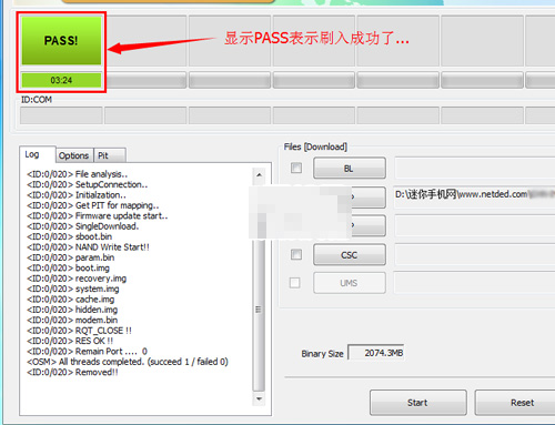 6:刷完之後,上面會顯示【PASS】字樣就表示刷入成功了。