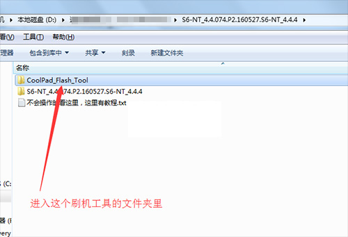 1:下載酷派S6-NT第三方的線刷包,下載下來放到電腦上進行解壓,解壓出來一個文件夾,文件夾裡還有兩個文件夾,一個文件夾裡是刷機工具,一個文件夾裡CP8格式的rom文件。