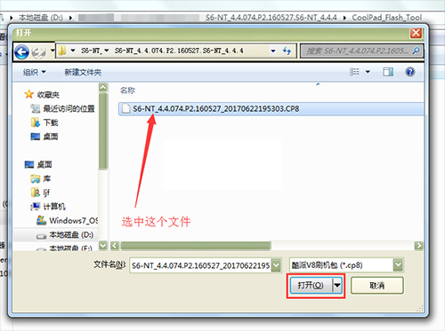 4:然後點擊【...】按鈕,在剛才解壓出來的文件夾的rom文件夾裡找到刷機包.CP8格式的文件選中並點擊確定。