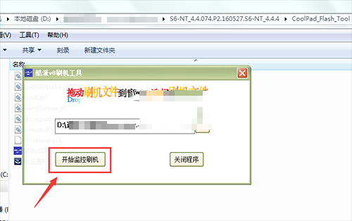 5:手機在完全關機的狀態下,按住手機的音量上鍵的同時並插入數據線,進入刷機提示頁面後,在按一次音量上進入模式後,點擊“開始監控刷機”。
