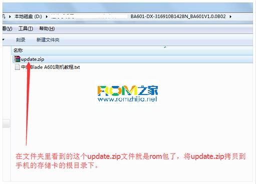 1:下載中興Blade A601的官方rom固件包,【中興blade A601刷機包】,下載下來後先解壓,解壓出來一個文件夾,然後在文件夾中找到update.zip文件