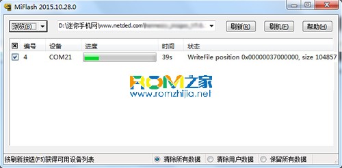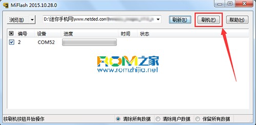5:接著點擊“刷新”按鈕,再點擊“刷機”按鈕,就開始給手機線刷了