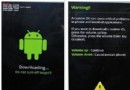 5、手機關機,同時按住音量“-”鍵、HOME鍵、電源鍵,出現英文界面後再按音量“+”鍵,進入界面為綠色機器人,此為刷機模式