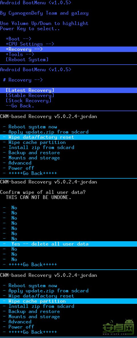 依次執行選擇並確認(音量鍵選擇,電源鍵確認)