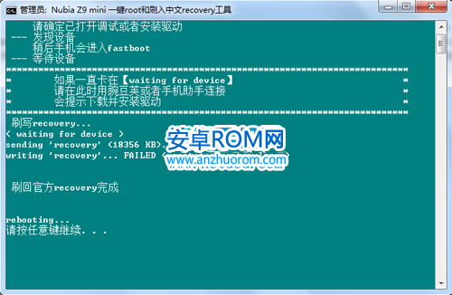 2:努比亞Z9 mini recovery刷入完成之後會有提示的。