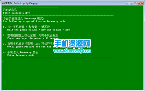 2:接著軟件識別出手機之後就會自動刷回官方recovery了,刷入完成之後會有提示的