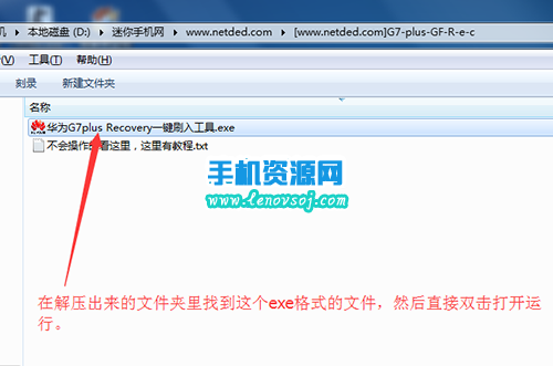 1:在手機裡打開usb調試模式,檢查一下手機有沒有用數據線連接好電腦,保證手機能和電腦正常連接,然後把之前下載下來的recovery工具包在電腦上進行解壓,在解壓出來的文件夾裡找到【華為G7plus Recovery一鍵刷入工具.exe】文件,然後直接雙擊打開運行