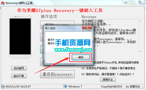 3:至此華為G7 Plus刷回官方recovery圖文教程 G7 Plus原版recovery全部結束。