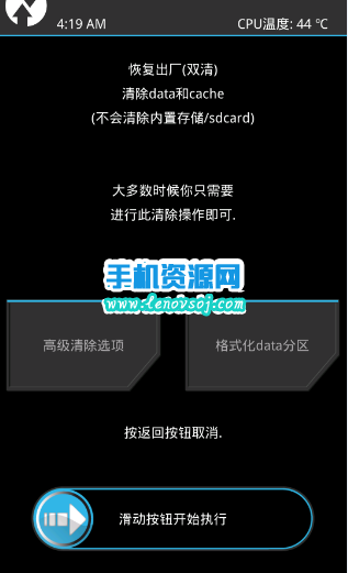 2:在進行卡刷刷機前要進行雙清,選取【清除數據】,然後滑動清除
