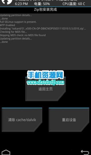 5:刷入完成後,選取【重啟選項】->【系統】,手機會自動重啟!第一次開機時間可能有點慢,請耐心等候!