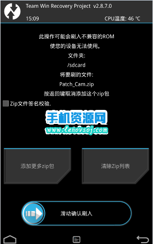 4:選取好刷機包後,【滑動按鈕確認刷入】,手機會自動刷入刷機包。(在這裡可以同時選取多個刷機包,例如有些系統需要刷入補丁的可以一同選取刷入)