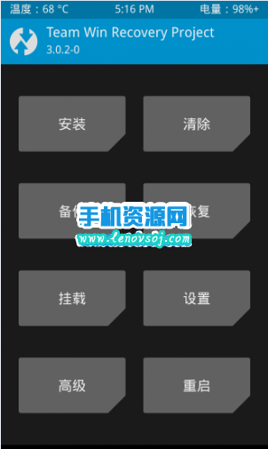 1:先將之前下載好的第三方的ROM卡刷包復制到手機的SD卡的根目錄下,然後手機開始進入recovery界面:進入方法:手機先關機,然後手機在關機的狀態下同時按【音量上鍵】+【電源鍵】同時按住即可進入。