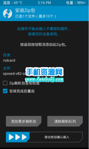 5:選取好刷機包後,【滑動按鈕確認刷入】,手機會自動刷入刷機包。