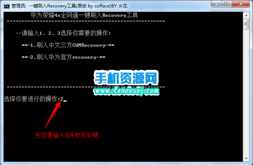 2:然後把之前下載下來的recovery工具包在電腦上進行解壓,解壓出來一個文件夾,然後在解壓出來的文件夾裡找到【刷入recovery.bat】文件,然後直接雙擊打開運行,然後輸入2並按回車鍵,接著軟件就會自動開始刷入官方的recovery了。