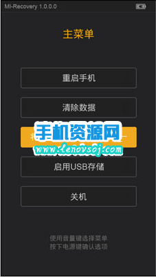 4:三清之後,回到recovery主界面,選取將update.zip安裝至系統一並確認,選取確認等候完成,選取重啟系統即可。