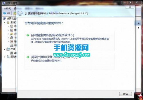 2:將手機開啟USB調試,連接至電腦,同時右鍵“計算機”(XP為“我的電腦”)--“管理”--設備管理器
