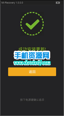 2:手機進入recovery(此時的recovery一定要是官方的recovery,因為官方的recovery才能刷小米官方的刷機包),然後手機在關機狀態下,同時按住手機的音量上鍵 + 電源鍵(兩鍵同時按住),屏幕亮起松開按鍵即可進入。