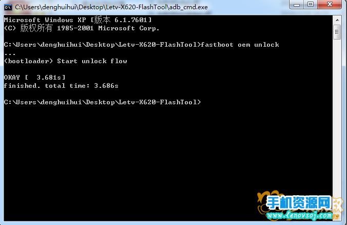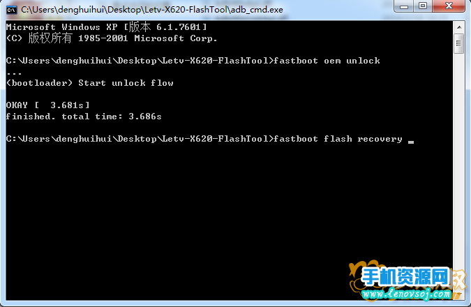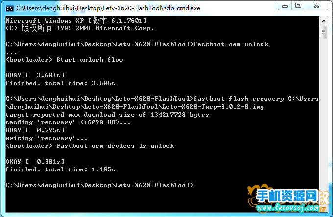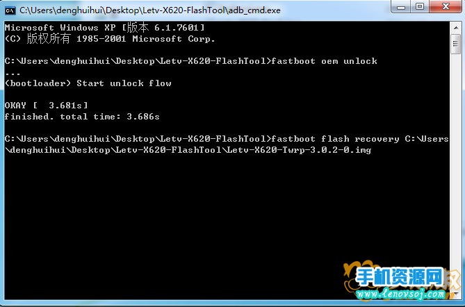 然後把Letv-X620-FlashTool文件夾裡面的Letv-X620-Twrp-3.0.2-0.img 文件推拽到命令提示框中