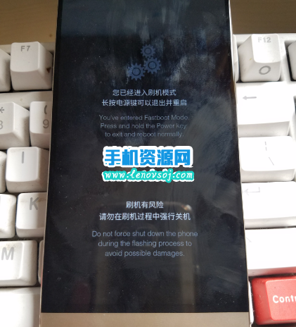 1:首先關機,關機後同時按住 音量減少鍵 和 開機鍵 等屏幕亮起的瞬間松開 開機鍵 此時保持音量減少鍵持續按住,直到進入下圖fastboot模式松開開機按鍵