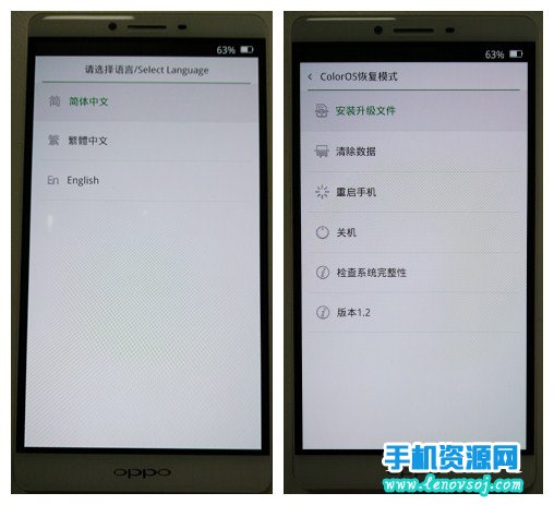 ②進入恢復模式:手機關機後,同時按住“開機鍵”和“音量下鍵”等手機產生震動即可松開電源鍵,等待進入OPPO恢復模式;
