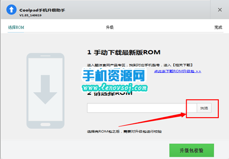 3:打開咱們安裝好的Coolpad Download Assistant軟件,然後在軟件上點擊浏覽,選擇我們剛才下載並解壓出來的CPB格式的固件rom包