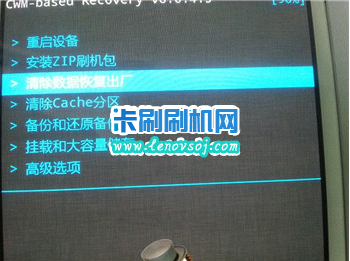 2:進入刷好的recovery中 (進入的方法:先把手機關機,手機徹底關機之後,然後同時長按手機的 音量增加鍵和音量減少鍵和開機鍵,三鍵一起按數秒即可進入recovery界面了)