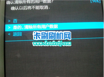 3:用音量鍵選取【清除數據恢復出廠】然後再選取【是的-清空所有用戶數據】然後按電源鍵確認