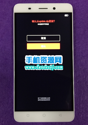 3:用音量上、下鍵選取“將update.zip安裝至系統”,按電源鍵確認;