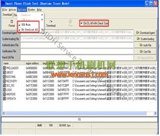 3、如下圖,勾選USB Mode、DA Download All、DA DLAll With Check Sum三個選項。