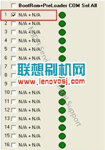 6、設置升級端口:如下圖,工具左側顯示端口號:其中,“+”前面為BootRom 口,後面為PreLoader口。