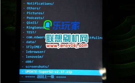 5、如圖選中root單刷包UPDATE-SuperSU-v2.37.zip,顯示確認選擇如下圖: