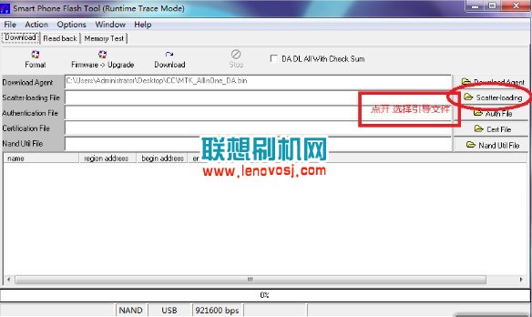3、打開之後點擊軟件上的Scatter-loading按鈕選對應的MT6589_Android_scatter_emmc.txt 文件,如下圖: