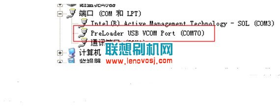 2、接下來我們要找手機連接電腦後的正確端口號,方法如下:手機取下電池再裝上,注意不要開機,直接把手機連接到電腦的 usb 口上,這裡馬上進入設備管理器,觀察設備管理器。會顯示如下端口(PreLoader),並記錄端口號。(注意並不是每個電腦的端口號都顯示是一樣的,請根據你的實際端口號為准)